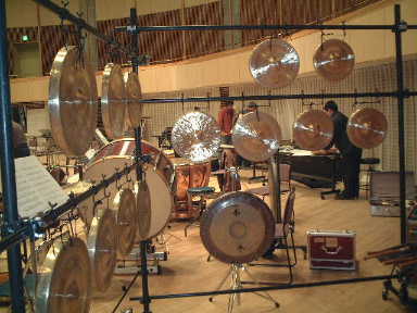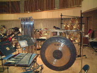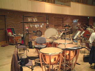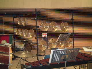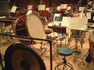 プッチーニ作曲歌劇「トゥーランドット」の打楽器のセッティングの写真です。