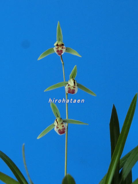 青大舌花 舌は、白地に紅褐色の大点を交え半巻き舌。