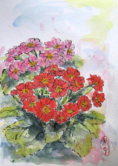 短い2月はあっという間に過ぎ、あわただしく3月が幕開けしました。4月を思わせるような、あったかい日があったかと思うと一転みぞれまじりの寒い雨が降り大あわて、「油断大敵」まだまだコートが手放せません。それでも夕方6時頃、まだうっすらと明るい空をみると、春の足音が近づいて来るのを感じますね。 この時期、色とりどりの「ポリアン」がにぎやかに、花屋さんの店先を飾っています。正式には「プリムラ・ポリアンサ」と言うそうですが、「ジュリアン」と呼ばれるものもあり素人目には区別がつきませんが、どれも春を呼ぶ仲間ですね。花の背丈にあわせてしゃがみこんでよく見ると、たくさんのつぼみがあり次々と咲いてくれそうです。しっかりとした色の花ですが、これもさくらそうの仲間だそうです。