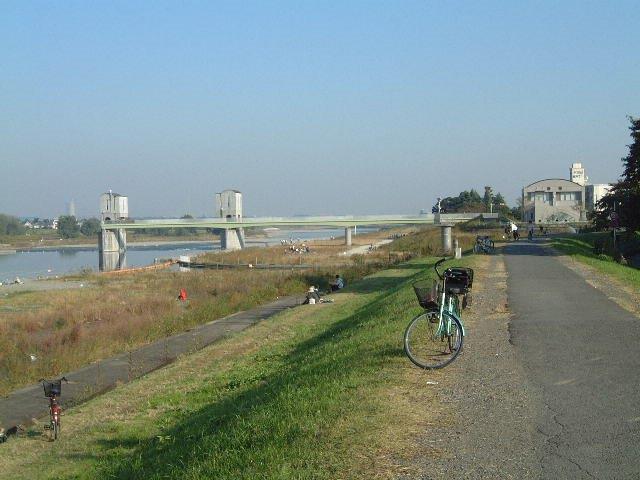 後方の「宿河原堰堤」。形は変わったが映画と一緒