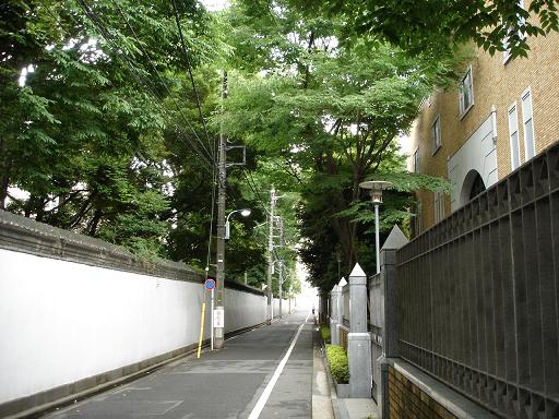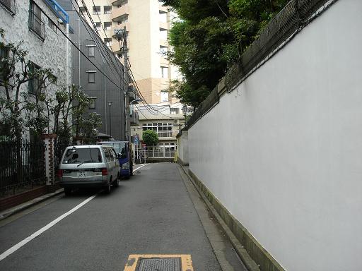 写真の左側の塀は「旧岩崎邸庭園」。この塀の形と木々の感じは非常によく似ている。