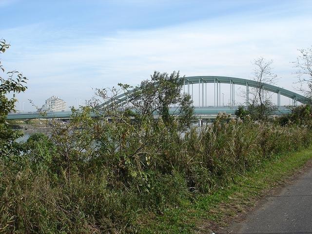 その先に小田急線の橋がある。