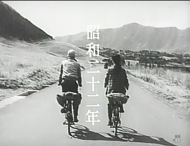 映画では杏子と伊島(土屋嘉男)が自転車に乗って、亮吉(木村功)とすれ違うシーン、