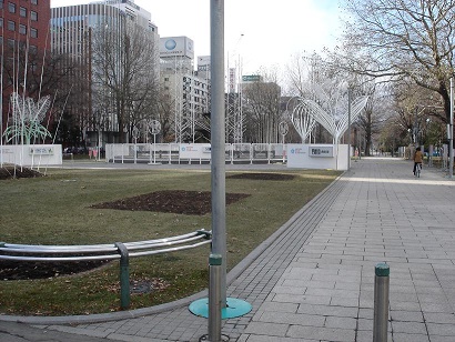 大通公園の4丁目付近。映画の画面ではベンチも映っているが、現在は撤去されてなくなっている。