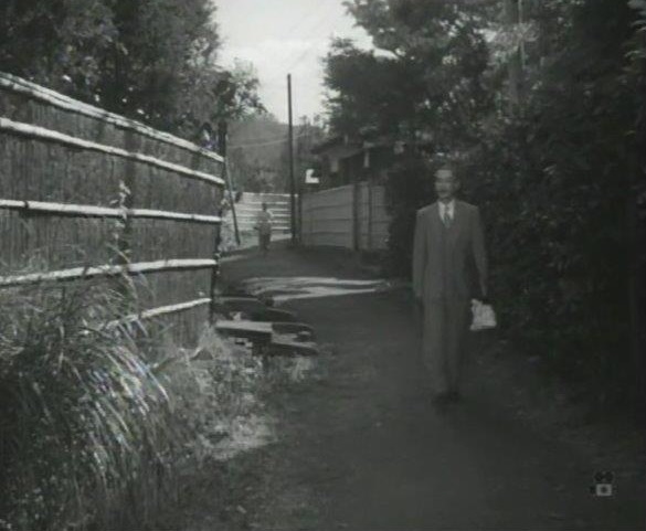 映画の冒頭、尾形信吾(山村聰)が鎌倉の家に帰宅途中に、後ろから「おとうさまー」と自転車に乗って近づいてくる