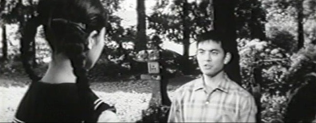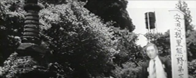 上記と同じ「熊野神社」。加山雄三、星由里子の二人は石段のあたりに座って英語のレッスンをする。