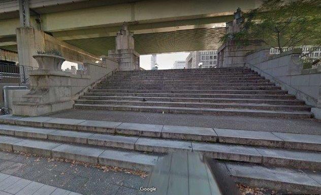 (下)中之島の対岸の西天満2丁目側のレトロな階段(3枚目)は映画の時とほとんど変わっていない。