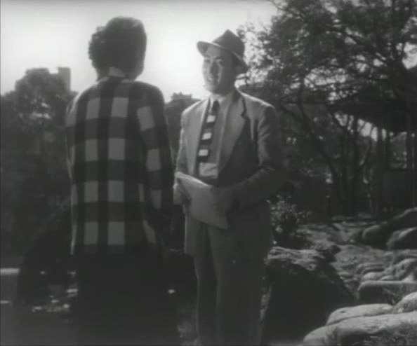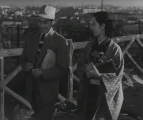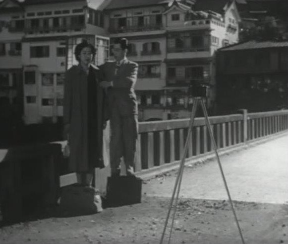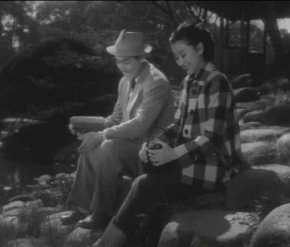 映画では若原雅夫と素子(津島恵子)が座って会話をする。