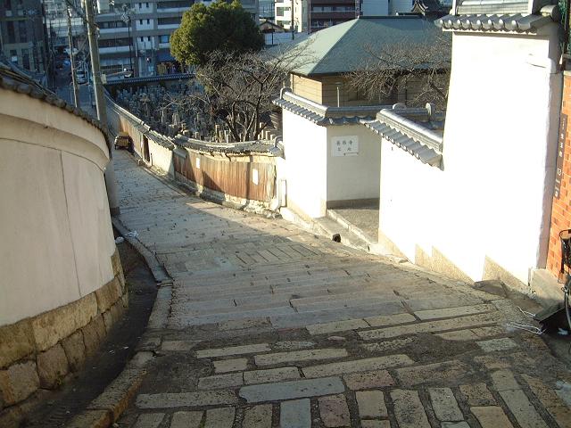 冒頭、浪花屋利兵衛(中村鴈治郎)が吾平(頭師孝雄)に対して初めて話しかけるシーンに出てくると思われる「源聖寺坂」。