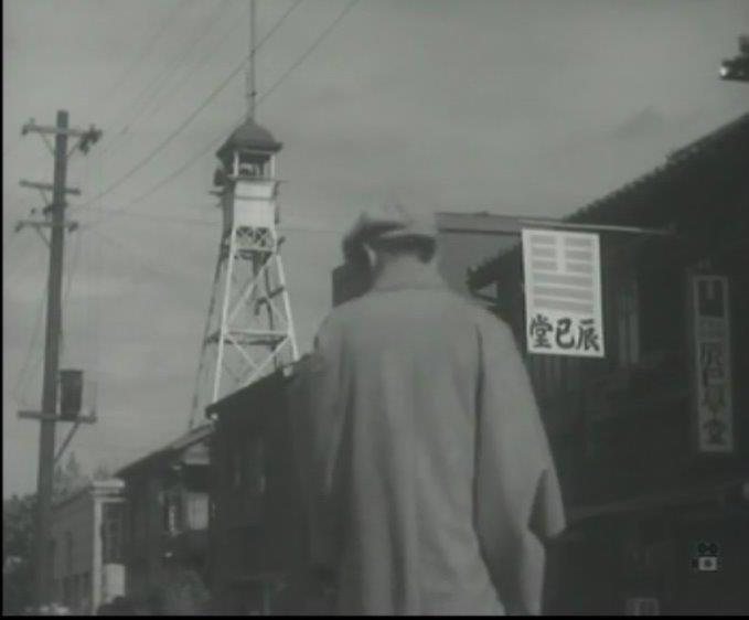 『昭和浅草映画地図』によると、画面写真に映っている「やぐら」は、現在二天門の斜め前にある「日本堤消防署二天門出張所」の場所にあったもの。