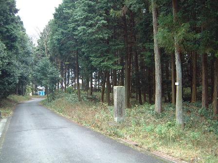 この石が目印となりました。実際の撮影場所(三船敏郎と京マチ子のキスシーンなど)は、写真手前の右側の森の中のようです。