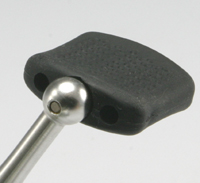 Knob Good knob is also Mitchell's tradition. It is soft. The two holes are made for the light weight and the molding. Don't remove the shaft of knob, because the threadlocker is too strong. If you turn the shaft, it may be broken. |