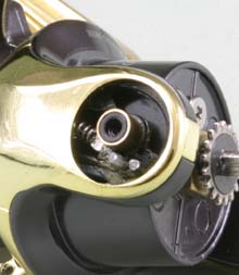 Bail stopper The bail stopper of the opposite side of bail arm prevents the breaking of bail wire . See the page of " Break ? Broken? " . But the stopper of AV-G500UL is too short to touch the rotor perfectly . I repared it with epoxy . |