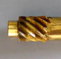 ピニオンギア 当然歯がねじってあります。ねじれ角は35度のようです。 |