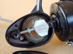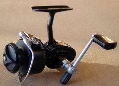 私の408 私の408です。購入したのは87年の3月。S社への就職の半月前でした。 見てのとおり、コレクターが喜ぶ70年代の408とは外観からして違います。オークションに出したって、値段も付かないリールです。 いまではバッジの金色も、ローターの赤ラインも消えて、みすぼらしくなってしまいました。 |