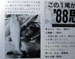 こちらはアングリング89年7月号。文中には出てきませんし、トリミングされて写っていませんが、この魚を釣ったのも408でした。 |