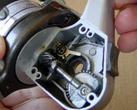 マルチポイントストッパー これもミッチェルの実用主義。ローターが5度や10度逆転したからって、魚が逃げますか? よりシンプルで軽く、信頼性の高いマルチポイント式です。もっともこれ以降はローラークラッチになっていきましたが。 |
