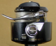 恐らく ミッチェルのベールスプリングが折れるという話をよく聞きます。恐らくそれは70年代までのベールのことだと思います。 写真のように開き角が非常に大きく、バネの負担が大きいからです。 |