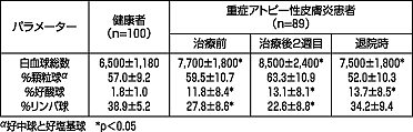 (表1)健康者とアトピー性皮膚炎患者での白血球分画の比較