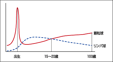 このようなリンパ球優位の体調は15〜20歳くらいまで続くが、食糧事情や生活パターンの改善によってこの年齢が上昇する傾向がある2)。日本では戦後の貧しい時代から今日の豊かな時代への間に、この年齢が大幅に上昇している。
