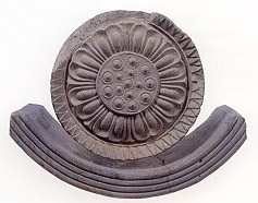 | 川原寺創建時の軒瓦(飛鳥・藤原京展図録 朝日新聞社から) 上:軒丸瓦、下:軒平瓦 |