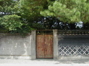| 御成門跡 桑名藩主をお迎えした門で本邸の東側にあります。久波奈名所図会にも描かれ、礎石が残っているので位置は江戸時代と変わっていないようです。 |