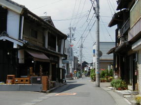 江戸時代以前は町屋川の堤防でしたが、慶長の町割りで町屋川の流れが付け替えられたので、桑名から員弁方面へ向かう濃州街道(員弁街道)となり、江戸時代中頃から人家が建ち並ぶようになって商店街を形成するようになりました。 員弁方面から馬で買い物に来る客が多く、馬道と呼ばれるようになったそうです。 この辺りは戦災を免れたので古い家並みを残しており、左手の家具屋さんの土蔵造りの建物は嘉永7年(1854)の建築だそうです。