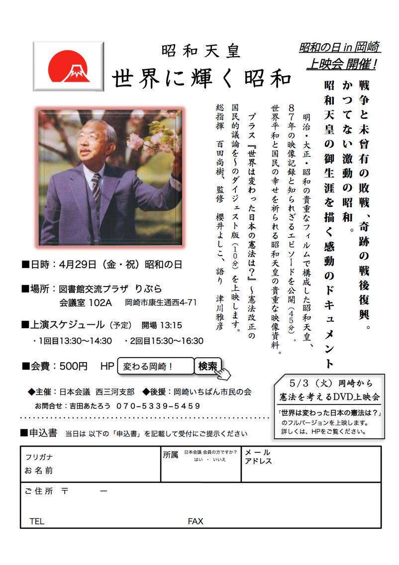 憲法改正ドキュメンタリーDVD「世界は変わった日本の憲法は?」の上映会をします。