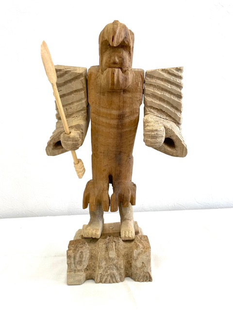 アステカの遺跡から発見された鷲の戦士像の模型を参考につくってみました。(模型では、手に武器は持っていません。)