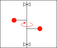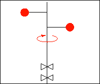 でも、回転バランスは、この図のように、左右の重さが同じで回転軸から重心までの距離が同じなら、問題ないはずです。 |