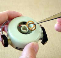 Shave the spool shaft This may be the best method . I shaved the spline of " A " . And I added the washer " B " . |