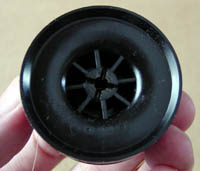 こっちが89モデルのスプール。樹脂のままです。でも、下巻きを強く巻きすぎなければ、問題ありません。 |
