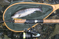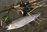 2008年4月6日に九頭竜川へサクラマスを釣りに行ったとき、釣り場で会った人が私のミッチェル400を見て「ライントラブル出まくりですか?」と聞きました。私は「全然問題ない」と答えましたが、その人はカーディナル33を渓流で使って相当苦労しているそう。よく聞いてみるとやはり原因は後ろ巻きでした。カーディナルのみならずインスプールスピニング全体の評判を落としたリバイバル33の罪は限りなく重いと改めて感じ・・・なに? 写真が関係ない? だから、これは4月5日に釣った粕川支流のアマゴで、この日も408はまったくのノントラブルで・・・。九頭竜の写真? そ、そんなもんあるわけねえがや。あんなとこはなあ、魚を釣りに行くところやないんや。「幻の魚を狙っている僕って素敵、うふ」と、ナルシシズムに浸りに行くところなんやで。 (2008/4/7)私は子供のころから、くじや抽選に当たったことがありません。小学校に上がるか上がらないかのころ近所の駄菓子屋さんに赤、黄、青の丸いガムを引くくじがありました。それぞれ1等、2等、ハズレだったのですが、私が引くと絶対青しか出ませんでした。 4歳下の弟は赤や黄をよく引きました。ところがある日、青を引いた弟がガムを箱に戻してしまいました。おばちゃんに怒られたので私はいいました。「おばちゃん、僕は青しか引けないから、今の青をとってあげるよ」 はたして私がくじを引くと、しっかり青いガムが上がってきました。引きながらやっぱり僕は運に見放された人間なんだなあと子供ながらに思ったものです。 おかげで、ギャンブル、宝くじ、株から怪しげな儲け話まで、この手のものには何の関心もない健全な人生(どこがや)を歩んでおるわけであります。 つまり、すなわち、こんな人が宝くじみたいなサクラマス釣りに行くのがまちがっとるのでしょう。もう行くの止めよ・・・。 |