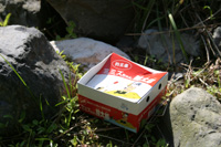 こういう連中渓流お決まりのミミズさんの空箱です。こういう人が川でどんなことをしていくのか、想像つきますよね。 昔釣りサンデーに魚類学者のエッセイのページがあって、「アマゴは10cmくらいのがから揚げにしたとき一番うまい」とさらっと書いてあったことがありました。偉いチェンチェイですらこうなんだから、エサ師なんてみんなこんなものなんだろうなと思ったものです。 この前岐阜の某釣具店に行ったらお客の釣果写真が飾ってありました。大量の死んだアマゴやイワナが新聞紙の上に並べてあります。その前で年配の渓流師らしき集団が「おおすごい」なんて感じでたむろしています。釣りなんてしょせん魚捕りの延長なんだから持って帰るなとは言いませんが、美しい渓流魚が醜く変色した様を見て何がうれしいのだろうと思います。 ネクロフィリアはエサ師の専売特許かと思っていたら、別の釣具店ではミノープラグの棚のところに40尾ものアマゴの死骸を並べた写真がヒットルアーの名前とともに貼ってありました。 こういうのを見た子供や初心者は、これがかっこいいことだと思うのでしょう。 常見忠氏の昔の著書に“魚を持ち帰るなとは言わない。だが、ストリンガーに首吊りにさせるのはやめろ。魚が哀れだ”と書いてありました。常見氏の美学が感じられます。 渓魚の死骸を自慢するような人たちにこんな美学は理解できないでしょうね。 |