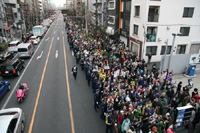 Japanese mediums never report this anti-nuclear demonstration ! 2011年4月10日に東京で行われた高円寺原発反対デモです。16年前、社会党が長良川河口堰のゲートを下ろしたとき、私はデモをしたり署名を集めたりすることで世の中が変わるという無邪気で純粋な心を捨てました。そんな私がこの日東京まで行ったのには理由があります。前日にツイッターで、某俳優が、“タレントが原発反対を言ったら仕事を干されるから行くなと家人に止められているが日曜日に高円寺で行われる反原発デモに行く”とツイートしたら、ツイートを見た人から“日本から出て行け”“非国民”と非難されたというのを見たからです。自分の意思で行動する人を何もしない人たちが批判する・・・これはイラク人質事件と同じ構図です。そう思ったら無性に腹が立ってきて、思わず電車に飛び乗ってしまったのでした。(2011/4/11)