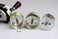 このまえ天竜川に行ったときバンタム100に入れて使ったのが左のアベイル製スプールでした。ブレーキは中央のスプールのように、バンタム100のオリジナルブレーキブロック(青)を1個だけオイルなしで付けていました。去年まで使っていた中央のアベイル試作スプールより巻き径が小さいせいかブレーキが効きすぎる感じがしたのでブロックにオイルを付けたところ、最初は良かったものの日が上がって暖かくなったらバックラッシュし始めました。続いてオイルが付いたままブロックを青2個にしてみたら効きすぎて飛ばなくなり、結局最初のオイルなし1個に戻しました。こんなことばかりやっていたのも魚があまり釣れなかった理由であります。 (2012/12/17)