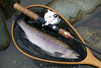 2012年12月28日天竜川のニジマスです。浜松は暖かいかと思ったら気温6度と水温11度よりも低い。おまけに午後は予報通りに雨になりました。そんな中なんとか良型のニジマスが釣れて今年の締めくくりとすることができました。でも、これがつい30分前に放流されたばかりの魚だということは、口が裂けてもいえません。ハイ水か。 (2012/12/30)