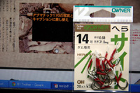 さぶいわ雪は降るわで日曜日は家にこもってスイミングフックを巻いておりました。今まで使っていたチヌバリ5号に替えて買ってみたのはダム湖用のへらバリです。入り数が同じ価格のルアーフックの倍くらいなのが嬉しいところです。しかし、主な理由は老眼が進んでダイヤモンドヤスリでバーブを落とすのができなくなったからというのが、悲しいところであります。 (2013/1/28)