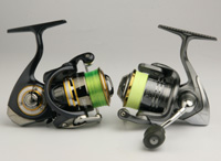 マイナーなリールを例にしますが、奥のスピードスピンはローターが軽く機械部分もよくできています。手前のミッチェル308Xはローターはオモリだらけ機械部分はオシュレーションが速すぎるなどかなりトホホです。