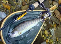 Avocet C2000 C is the new economy virsion of Avocet series. I bought AV-C2000. I found that its spool is nearer than Cardinal 302 which is the brother of AV-C/G2000. Although it is farther than 500/1000, the angler can control the line by the forefinger. Its weight is 275g. It is light, because its size is same as Daiwa's 2500 before " ABS ". The reason of light weight is the small housing and small gear. It is right. Most Japanese reels use the larger gears for efficiency. But their weight are heavy. Mitchell's selection is better than Japanese. Its color is good too. I think that it is good one. (2005/5/5) |