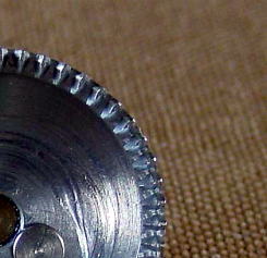 こうすればいいのですが・・・ ミッチェルのフェースギアの耐久性を増すには、ピッチ円直径をより内側にずらし、ピッチ円直径より外側を広く取ればいいということになります。 これはアブマチック170のフェースギア。ピッチ円直径の外側が広く取ってあります。 でも、こういう設計を308でできるかというと、これは難しい。もともと308は4.4:1のベベルギアでスタートしました。そのボディに5:1のギアを入れることから、無理があるのです。 |
