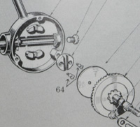 Drag The knob is male screw, the shaft is female screw. The friction washer is the fiber under the spool. |