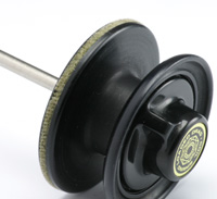 ラインローラー 一見普通のラインローラーですが、ここが大森リールの一番の特徴といっていいところです。硬質クロームメッキされた真鍮ローラーの中には・・・。 |
