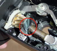 Bushing 2 The pinion is supported by POM bushing ( red circle ) . The POM bushings are used on main gear shaft and worm shaft too . It is durable design . Many of SHIMANO's R&D member were surf caster . So SHIMANO's surf spinning reels are good . |
