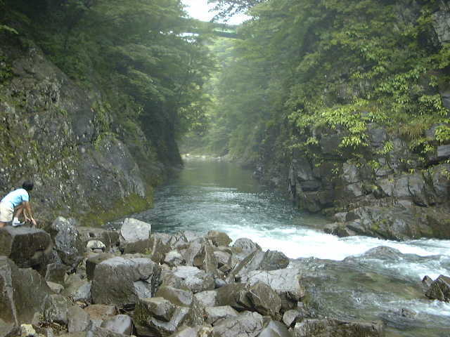 水量もやや多いのかもしれない。しぶきがあがって付近は霧雨状態。周囲の深い山とこの流れは仙台市内とは思えない感じ。 |