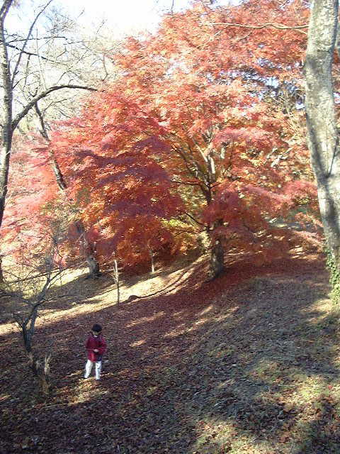 紅葉はもう終わりかけているけれど、日の光を浴びて燃えるような色になっていた。