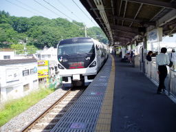 列車は定刻に発車。すぐに乗務員が切符の拝見に来た。ホリデーパス(企画物ではあるが普通乗車券の一種である)を購入していたので、大月から韮崎までの普通乗車券と千葉から韮崎までの自由席特急券を購入。(甥っ子は中学生であるが本人の希望により小学生として扱った)