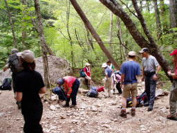 下山し始め約1時間で天鳥川に着いた。ここで休息。この水は冷たくて旨い。後ろのグループも休憩をとっていた。甥っ子は靴下脱いで足を水に漬けていた。気持ち良さそうである。