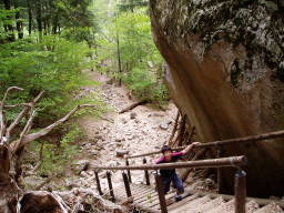 天鳥川を過ぎると大小の岩が点在する急登の登山道を歩く。巨岩の脇に階段がありまずそこを登る。次に、岩盤の斜面。これはロープがかけてありそれを頼りに登る。こう言う道は多少危険ではあるが私としては楽しい。