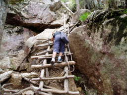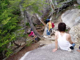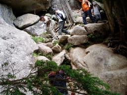 岩場はさらに険しくなる。この時間は登る人と下る人が結構いて、お互い道を譲りあった。